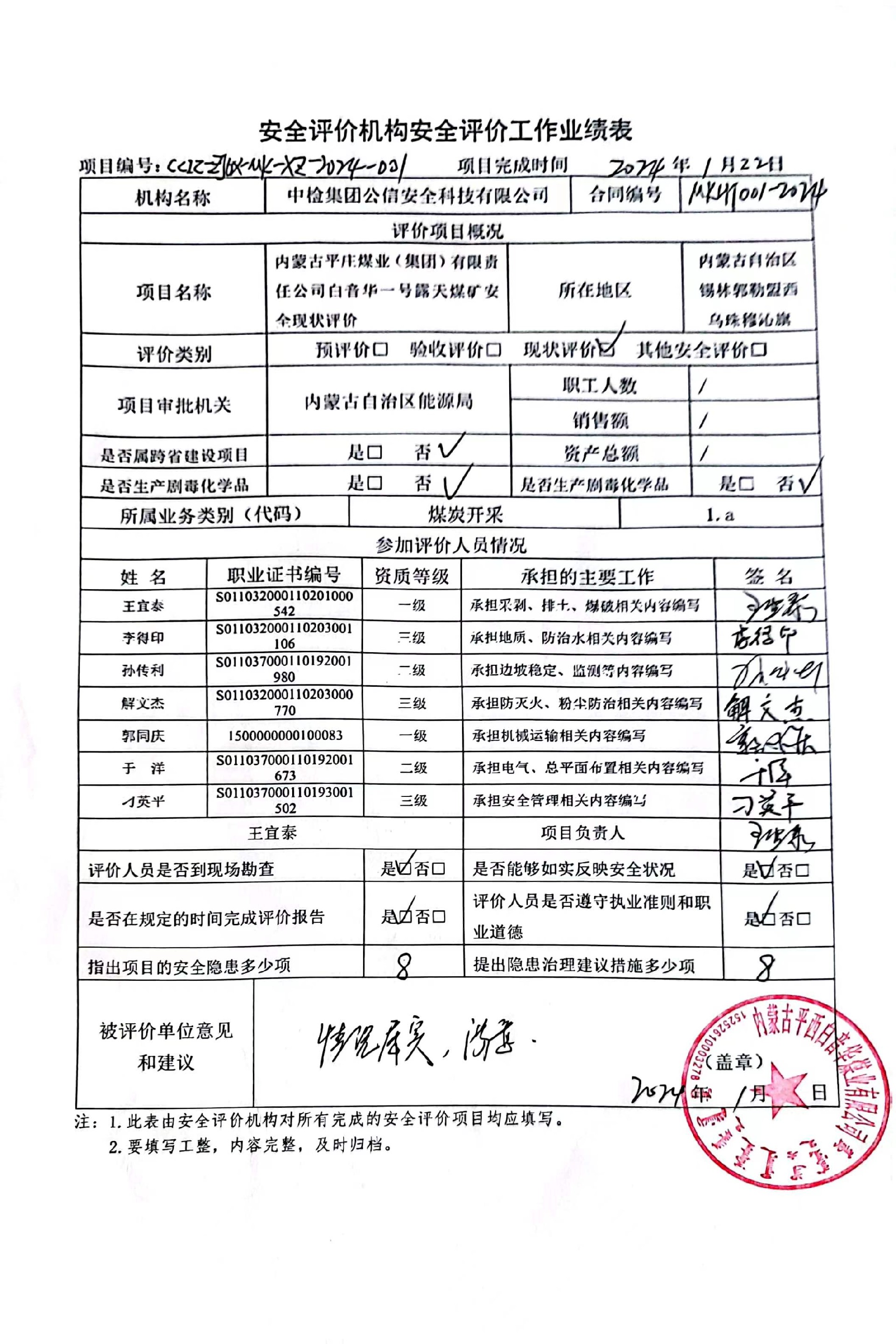 評(píng)價(jià)項(xiàng)目名稱 | 內(nèi)蒙古平莊煤業(yè)(集團(tuán))有限責(zé)任公司白音華一號(hào)露天煤礦安全現(xiàn)狀評(píng)價(jià)報(bào)告 | ||||||