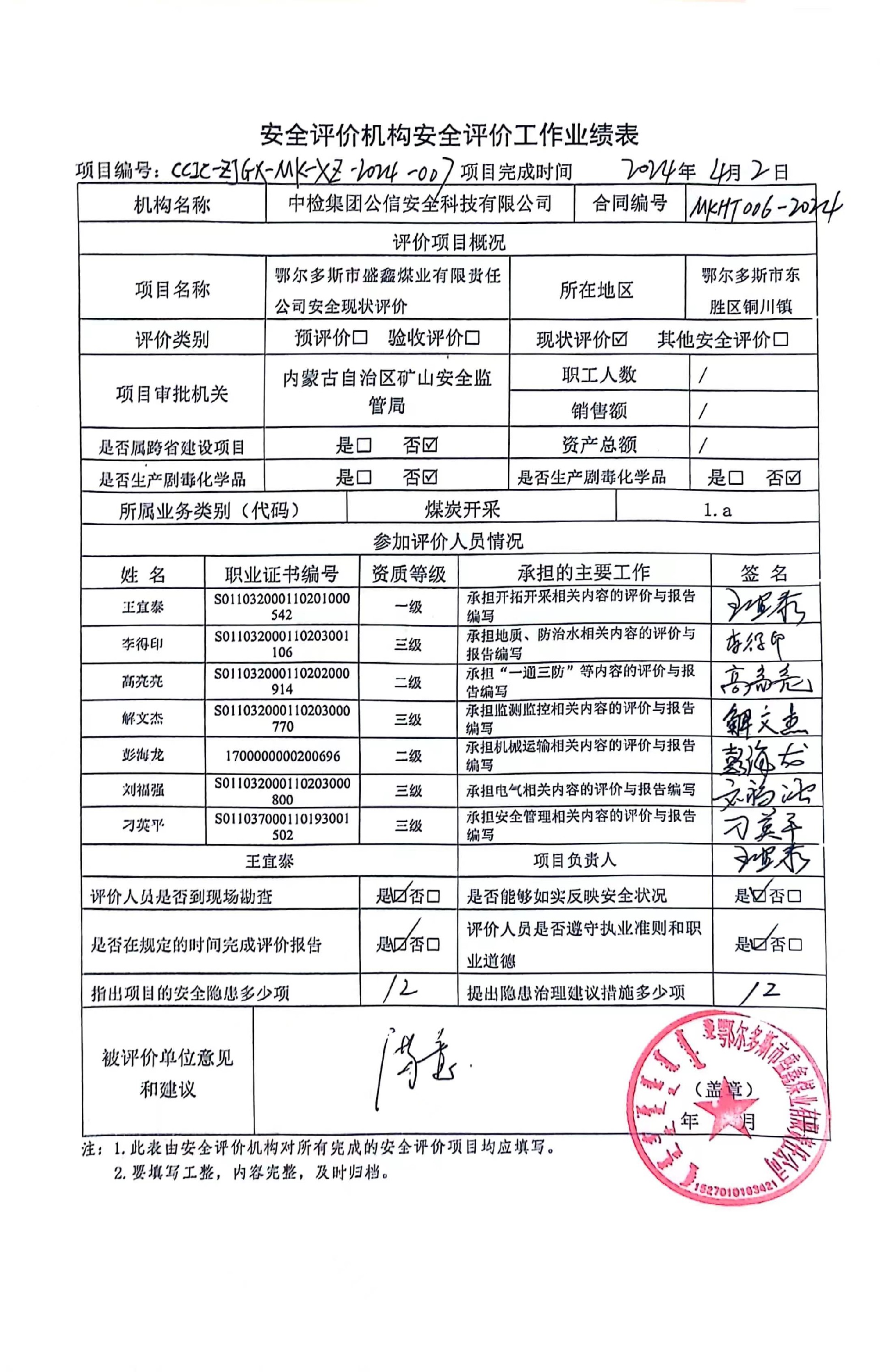 評價項(xiàng)目名稱 | 鄂爾多斯市盛鑫煤業(yè)有限責(zé)任公司安全現(xiàn)狀評價報告 | ||||||