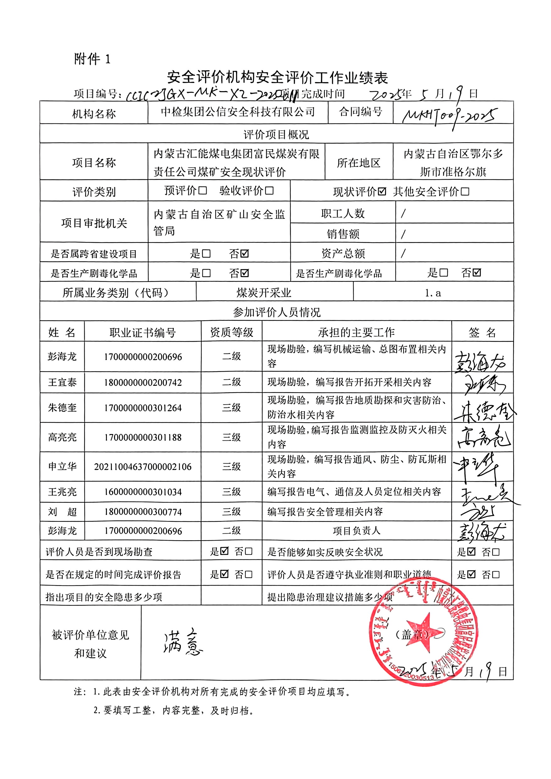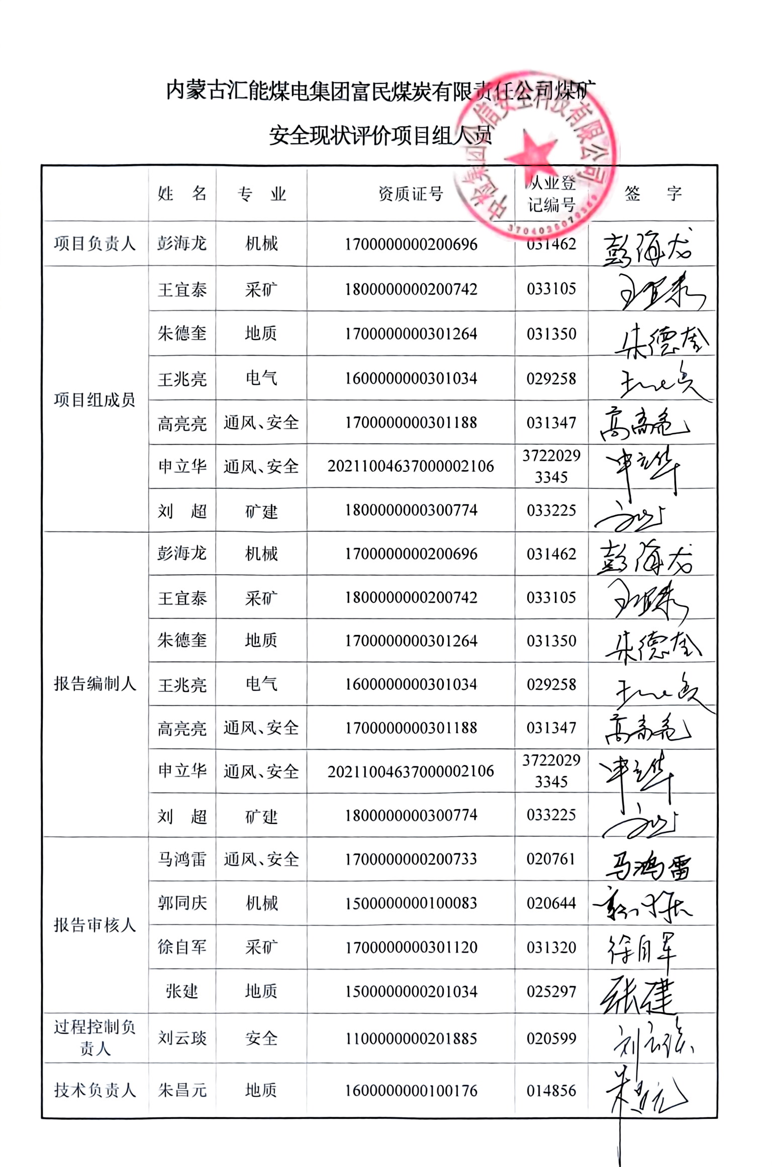 評價項目名稱 | 內(nèi)蒙古匯能煤電集團富民煤炭有限責任公司煤礦安全現(xiàn)狀評價報告 | ||||||