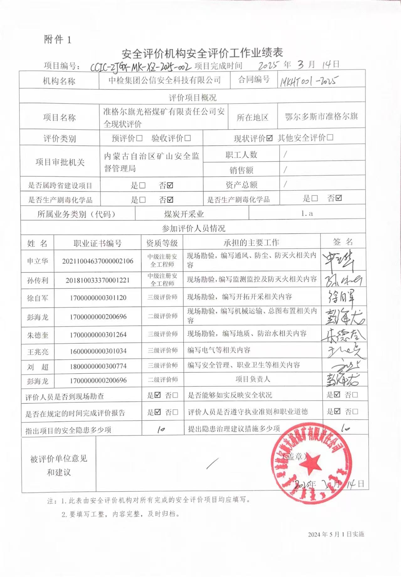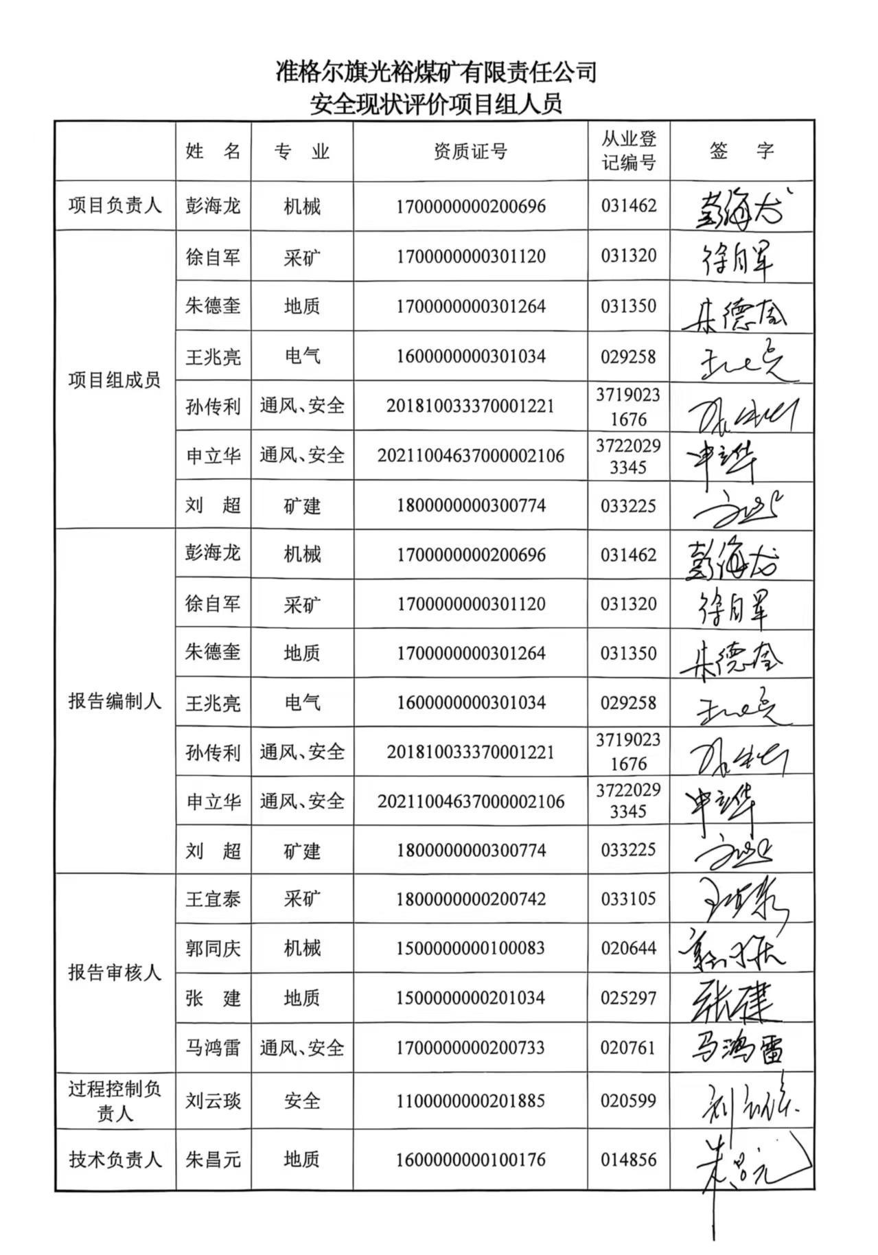 準(zhǔn)格爾旗光裕煤礦有限責(zé)任公司安全現(xiàn)狀評價報(bào)告 | ||||||