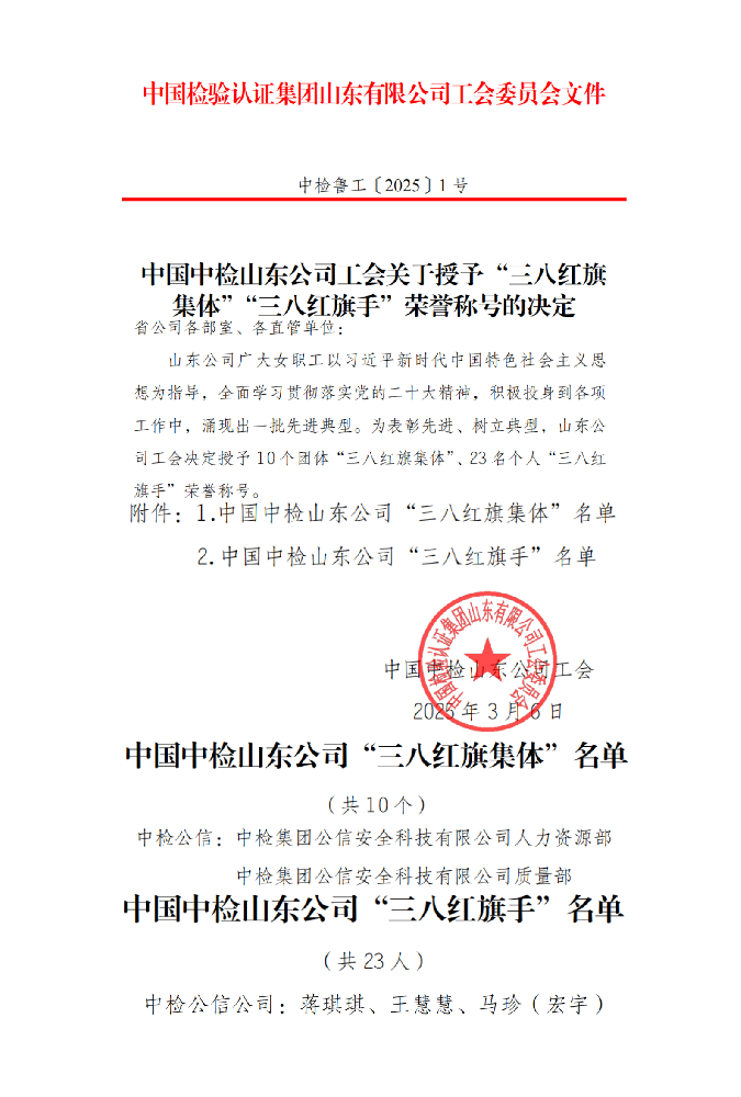 喜報(bào)!中檢公信人力資源部等部門榮獲“三八紅旗集體”稱號(hào)