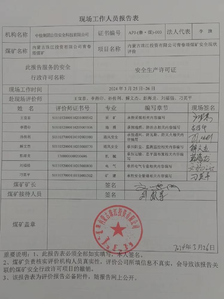 4內(nèi)蒙古珠江投資有限公司青春塔煤礦安全現(xiàn)狀評價
