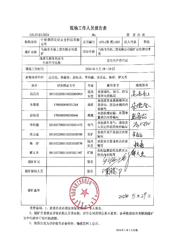 7烏海市天裕工貿(mào)有限公司煤礦安全現(xiàn)狀評價