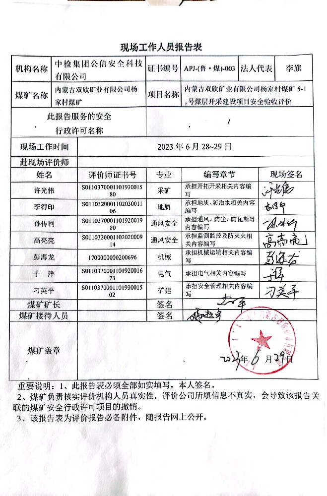 2023年3.3內(nèi)蒙古雙欣礦業(yè)有限公司楊家村煤礦5-1上號煤層開采建設項目安全驗收評價報告