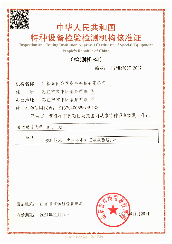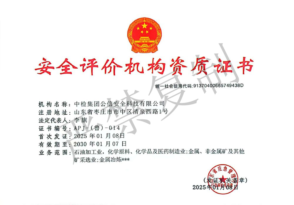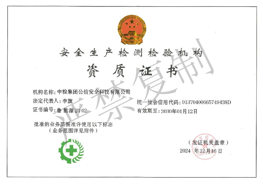 機(jī)構(gòu)名稱:中檢集團(tuán)公信安全科技有限公司證書編號(hào):APJ-(魯)-014有效期至:2030年01月07日
