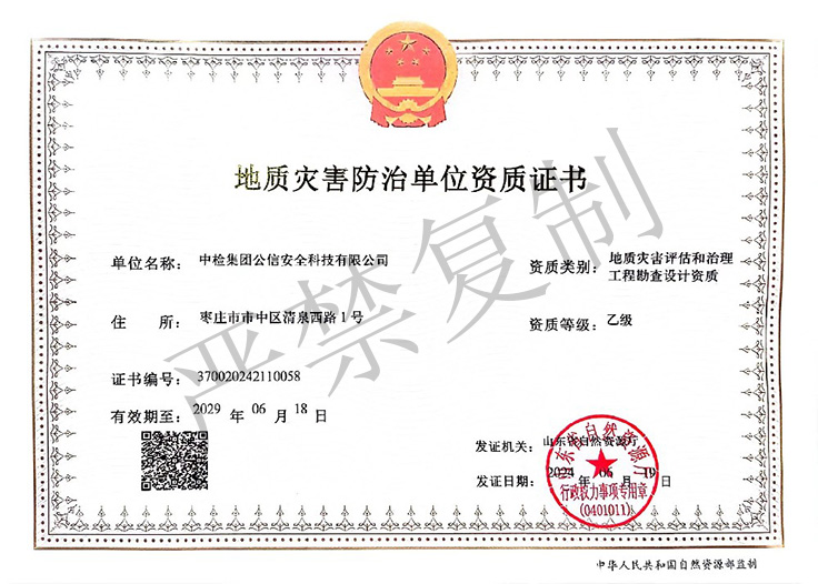 地質(zhì)災(zāi)害防治單位資質(zhì)(地質(zhì)災(zāi)害評(píng)估和治理工程勘查設(shè)計(jì)、地質(zhì)災(zāi)害治理工程監(jiān)理)