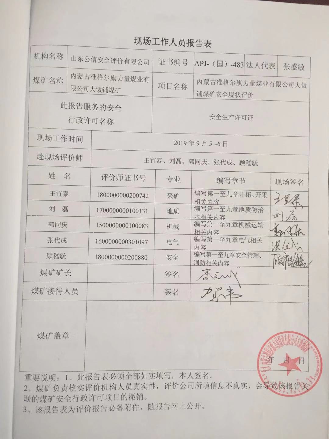2019年第4季度1.內(nèi)蒙古準(zhǔn)格爾旗力量煤業(yè)有限公司大飯鋪煤礦安全現(xiàn)狀評(píng)價(jià)報(bào)告