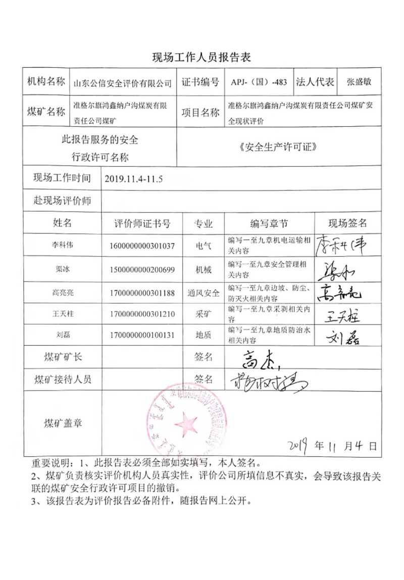 2019年第4季度7.準(zhǔn)格爾旗鴻鑫納戶溝煤炭有限責(zé)任公司煤礦安全現(xiàn)狀評價報告