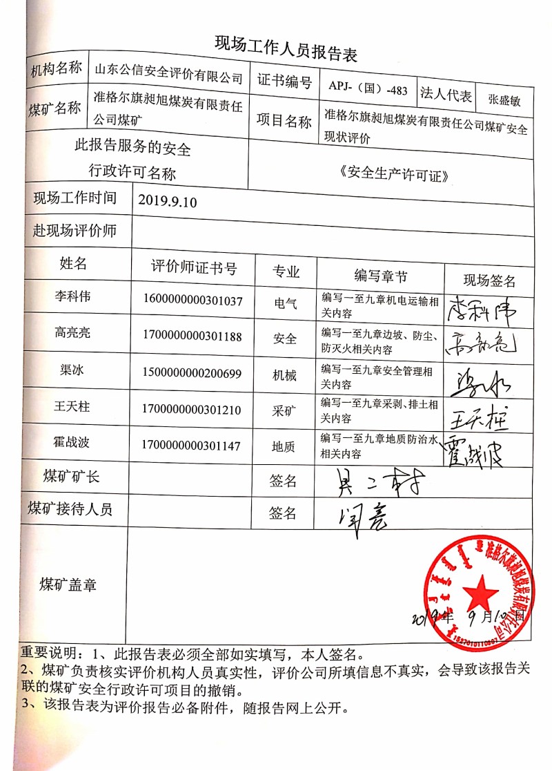 2019 年第4季度8.準(zhǔn)格爾旗昶旭煤炭有限責(zé)任公司煤礦安全現(xiàn)狀評價報告
