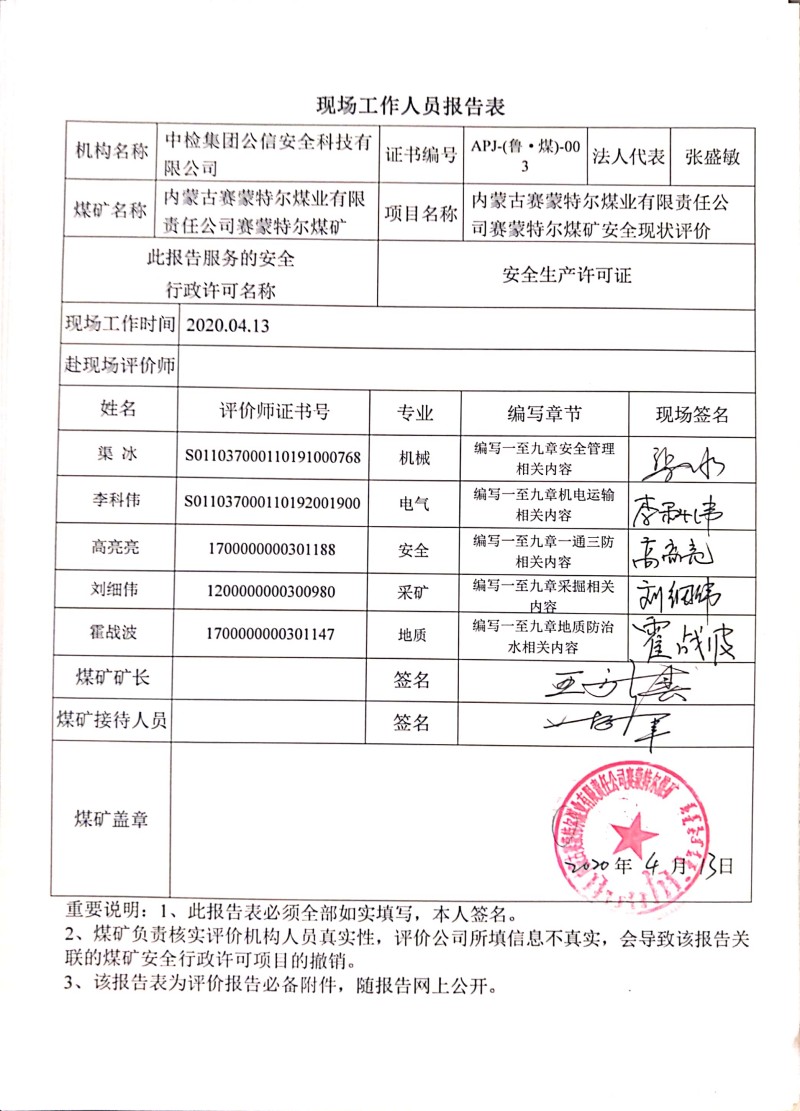 2020年第3季度1.內(nèi)蒙古賽蒙特爾煤業(yè)有限責(zé)任公司賽蒙特爾煤礦安全現(xiàn)狀評價(jià)