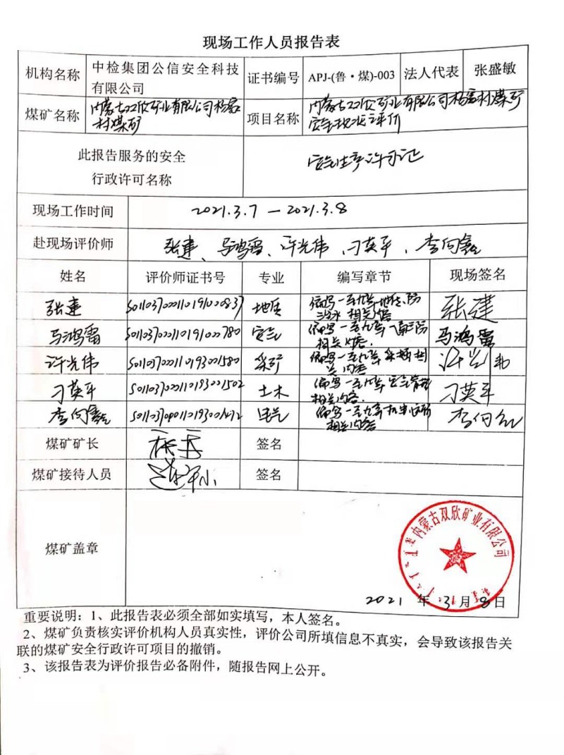 安全評(píng)價(jià)報(bào)告網(wǎng)上公開信息表 內(nèi)蒙古鄂爾多斯市 季度:二一年二季度 評(píng)價(jià)項(xiàng)目名稱 內(nèi)蒙古雙欣礦業(yè)有限公司楊家村煤礦