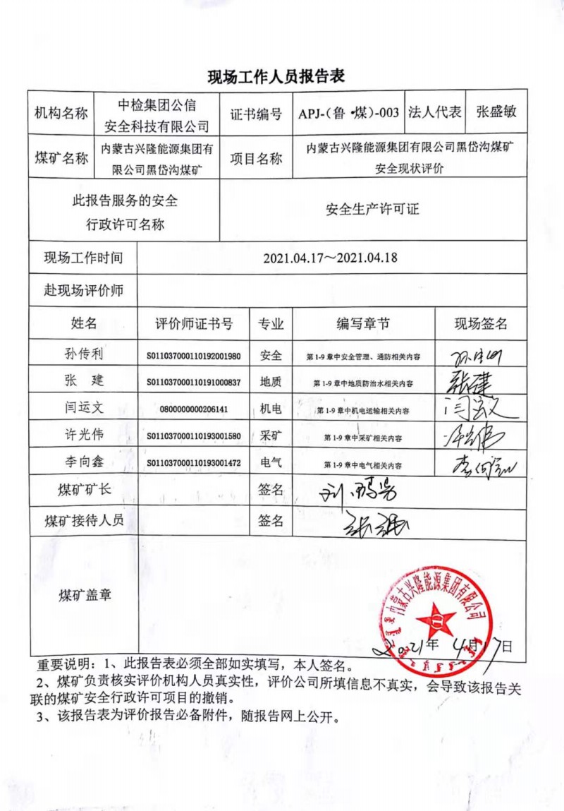 安全評(píng)價(jià)報(bào)告網(wǎng)上公開(kāi)信息表 季度:四季度 評(píng)價(jià)項(xiàng)目名稱(chēng) 內(nèi)蒙古興隆能源集團(tuán)有限公司黑岱溝煤礦安全現(xiàn)狀評(píng)價(jià)