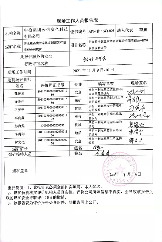 2021年第4季度2伊金霍洛旗蘭家塔富源煤炭有限責(zé)任公司煤礦安全現(xiàn)狀評(píng)價(jià)報(bào)告