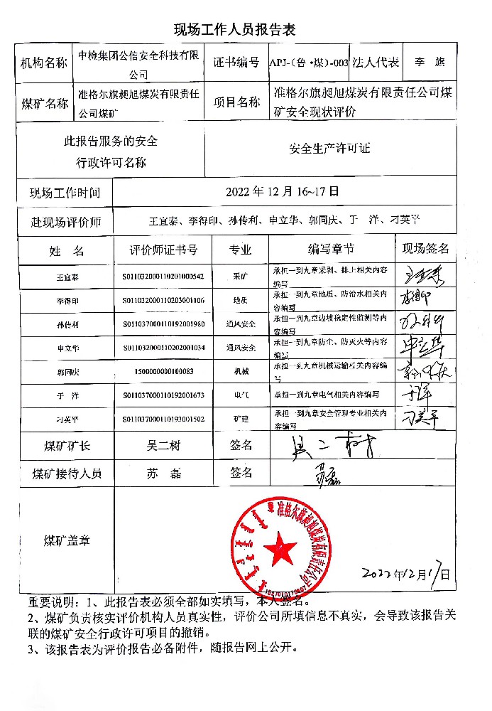 1準(zhǔn)格爾旗昶旭煤炭有限責(zé)任公司煤礦安全現(xiàn)狀評價報告