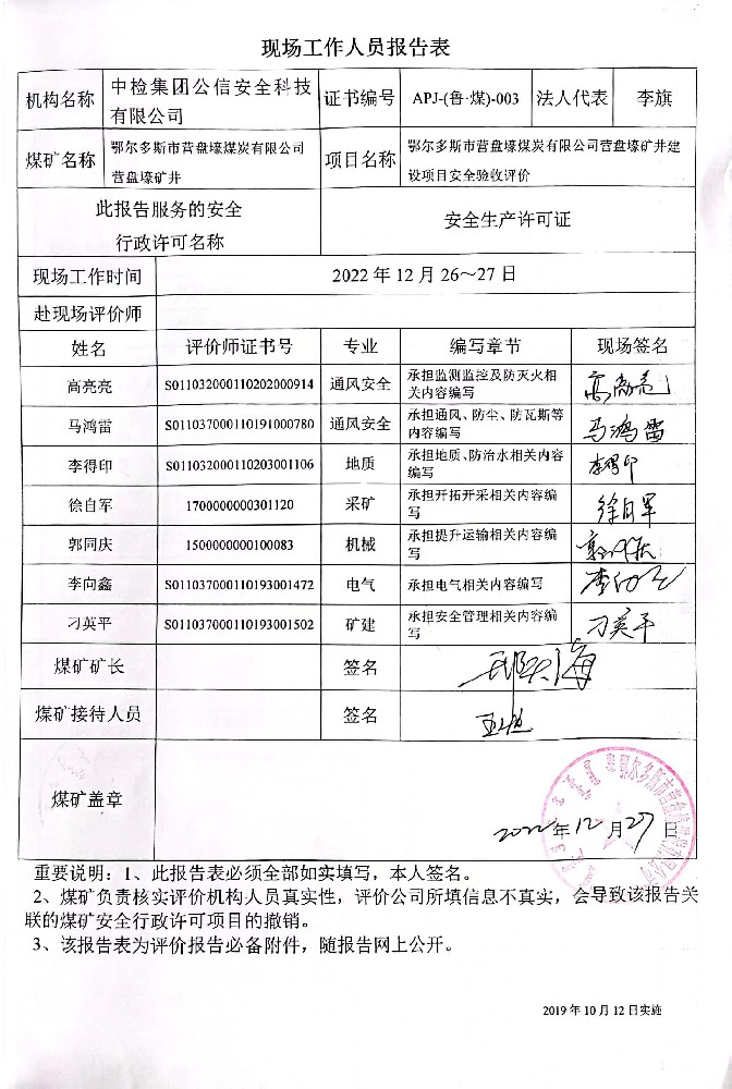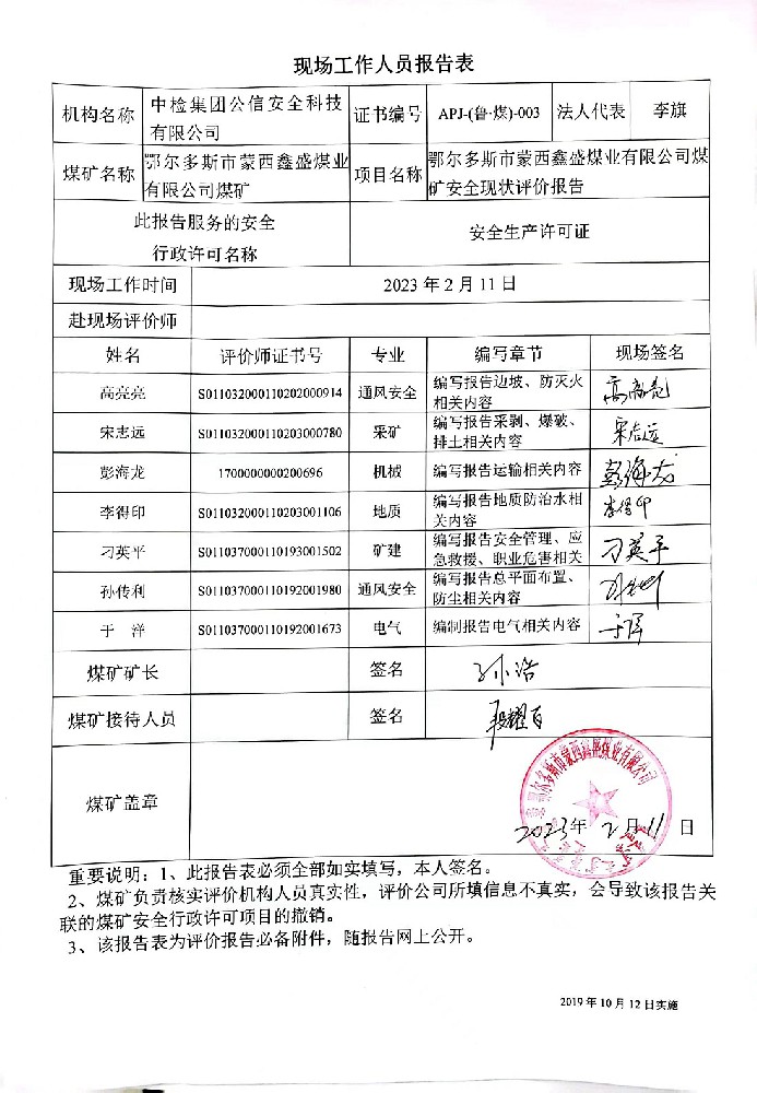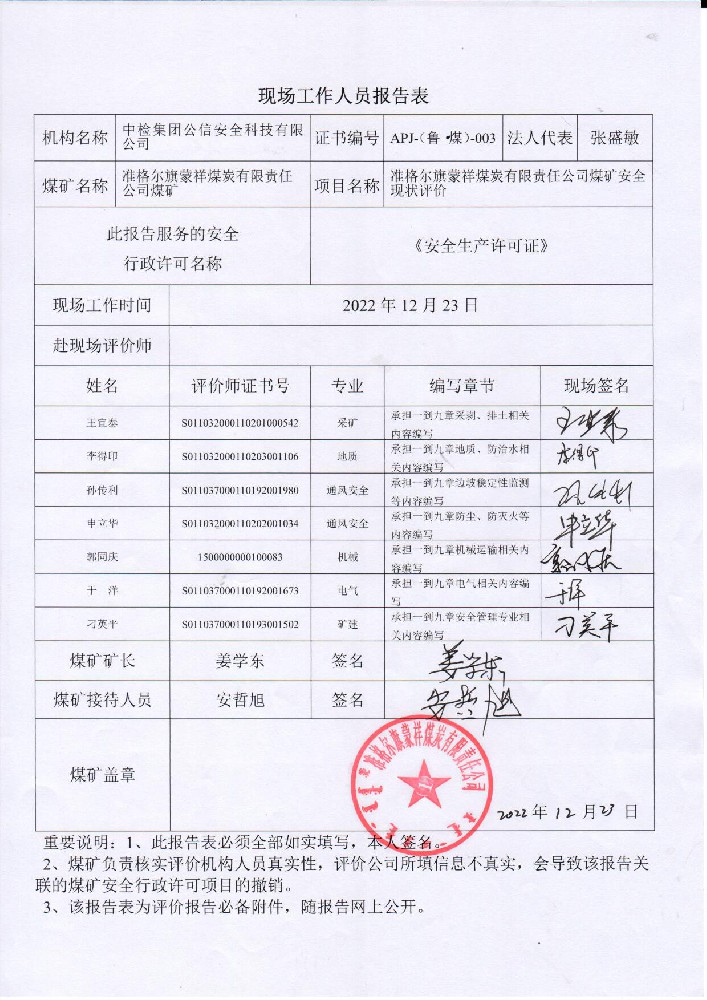 2準(zhǔn)格爾旗蒙祥煤炭有限責(zé)任公司煤礦安全現(xiàn)狀評價報告