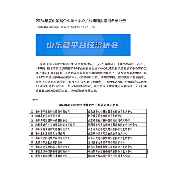 2024年11月12日,山東省發(fā)展和改革委員會公布了2024年度山東省企業(yè)技術(shù)中心擬認(rèn)定名單,中檢集團(tuán)公信安全科技有限公司(以下簡稱中檢公信公信)成功入選。山東省級企業(yè)技術(shù)中心是企業(yè)根據(jù)市場競···
