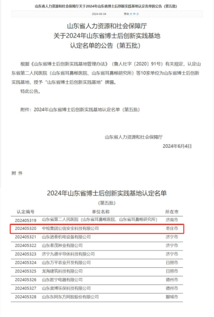 2024年6月4日,山東省人力資源和社會保障廳公布了關于山東省博士后創(chuàng)新實踐基地認定名單的公告(第五批),中檢集團公信安全科技有限公司成功通過認定。博士后創(chuàng)新實踐基地,是企業(yè)引進和培養(yǎng)人···