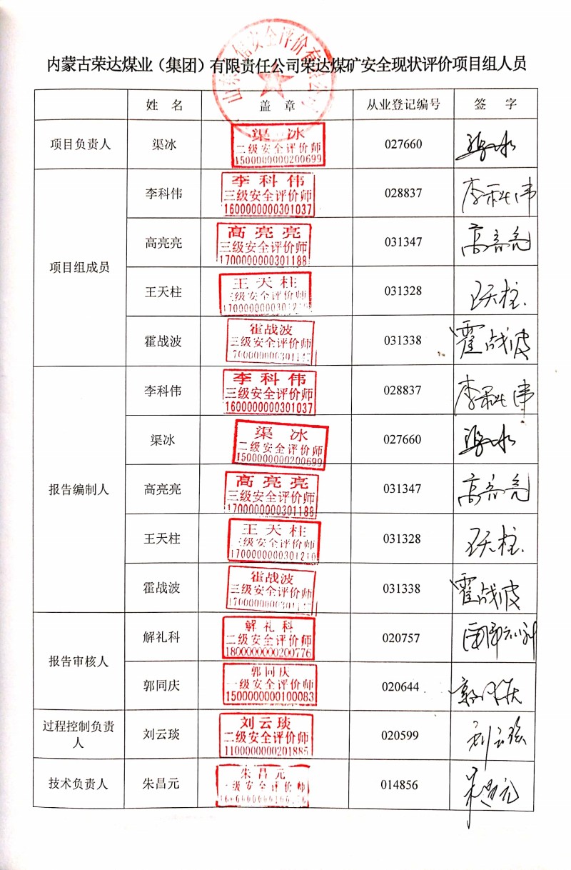 | 評價項目名稱 | 內(nèi)蒙古榮達煤業(yè)(集團)有限責任公司榮達煤礦安全現(xiàn)狀評價報告 | ||||||