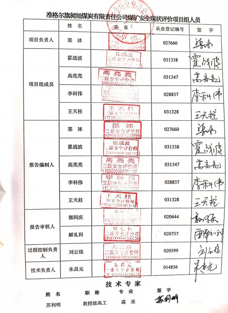 | 參與安全評(píng)價(jià)工作的注冊(cè)安全工程師: 渠冰、高亮亮、霍戰(zhàn)波 |