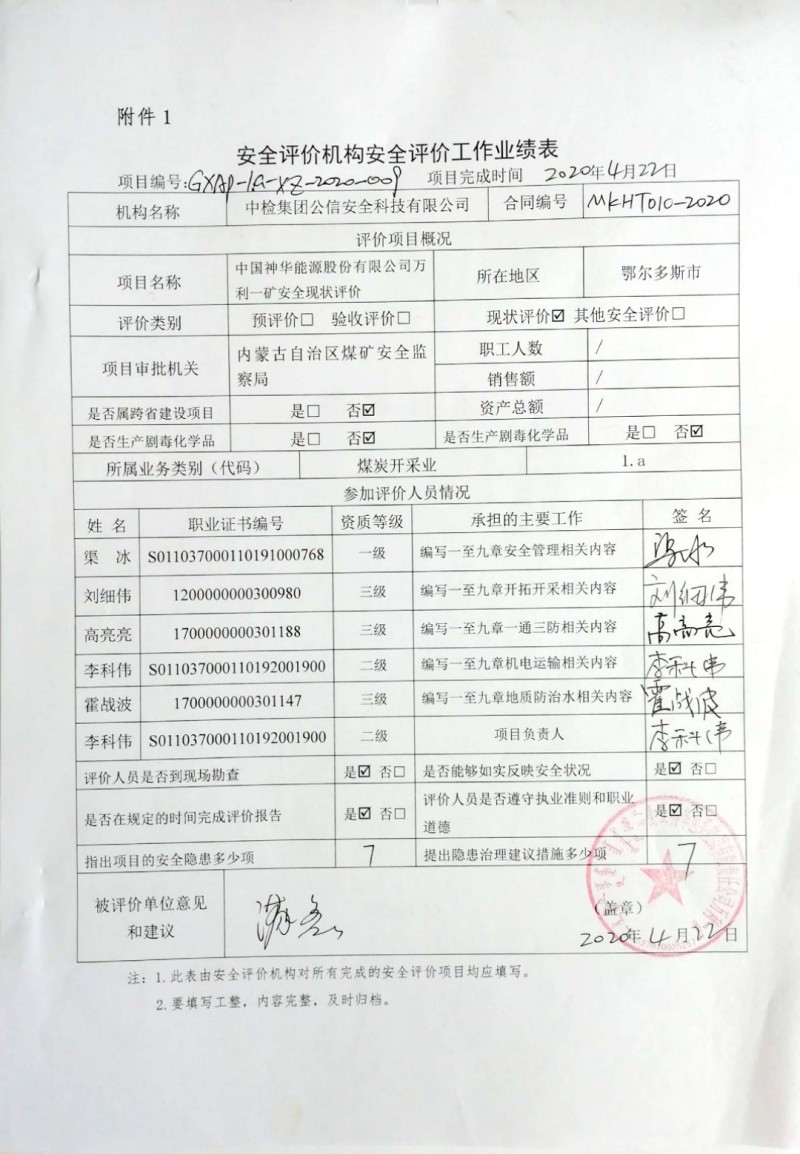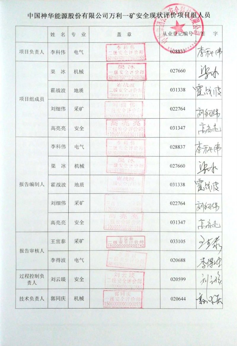 | 評價項目名稱 | 中國神華能源股份有限公司萬利一礦安全現(xiàn)狀評價報告 | ||||||