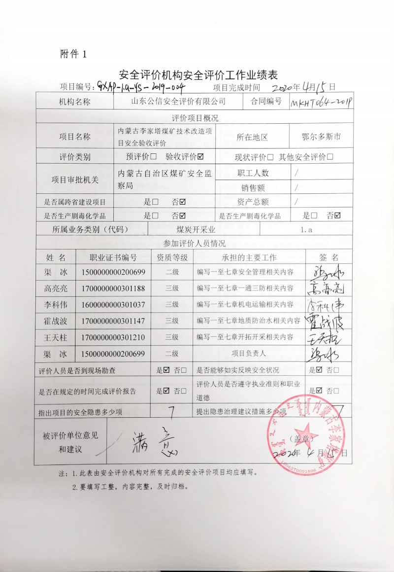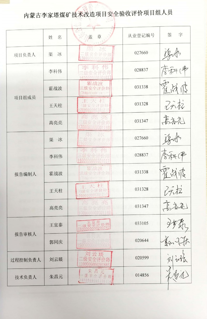 | 評價項目名稱 | 內(nèi)蒙古李家塔煤礦技術(shù)改造項目安全驗收評價報告 | ||||||