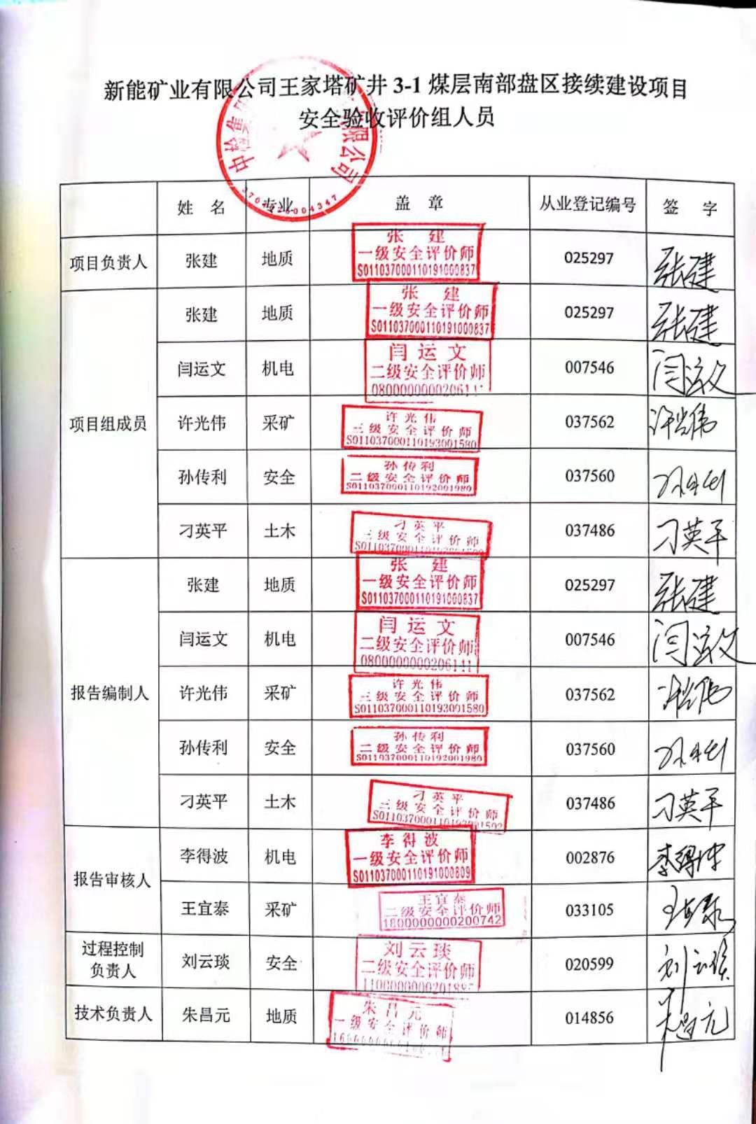 | 評(píng)價(jià)項(xiàng)目名稱 | 新能礦業(yè)有限公司王家塔礦井3-1煤層南部盤(pán)區(qū)接續(xù)建設(shè)項(xiàng)目安全驗(yàn)收評(píng)價(jià)報(bào)告 | ||||||