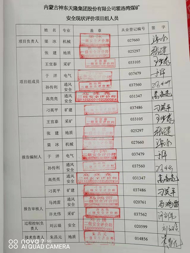 | 評價項目名稱 | 內(nèi)蒙古神東天隆集團股份有限公司霍洛灣煤礦安全現(xiàn)狀評價報告 | ||||||